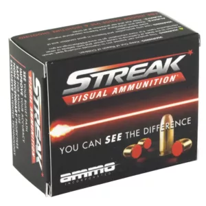 Streak’s exclusive patented technology allows the shooter to visually see the projectile’s path towards its target. Streak rounds are non-incendiary, they do not generate heat so they are safe to use in environments where traditional tracers are prohibited and can be a serious fire hazard. The results are game changing in many aspects for the consumer, law enforcement, and military. For indoor range use and nighttime shooting.