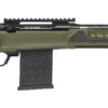 Versatile hunting rifle with spiral fluted barrel and bolt body. Gray/green composite stock. Shorter barrel lengths optimized for suppressor use. Detachable box magazine. Two-piece bolt handle.