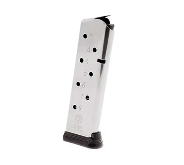 This detachable magazine is constructed of stainless steel and is compatible with your Ruger SR1911. This model has a 7-round capacity.